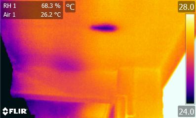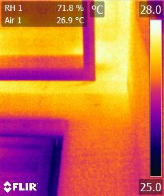 Le immagini evidenziano le variazioni delle mappature termiche in seguito all’immissione del carico idrico nelle vasche allestite nelle relative porzioni di terrazzo che ne costituiscono l’estradosso.